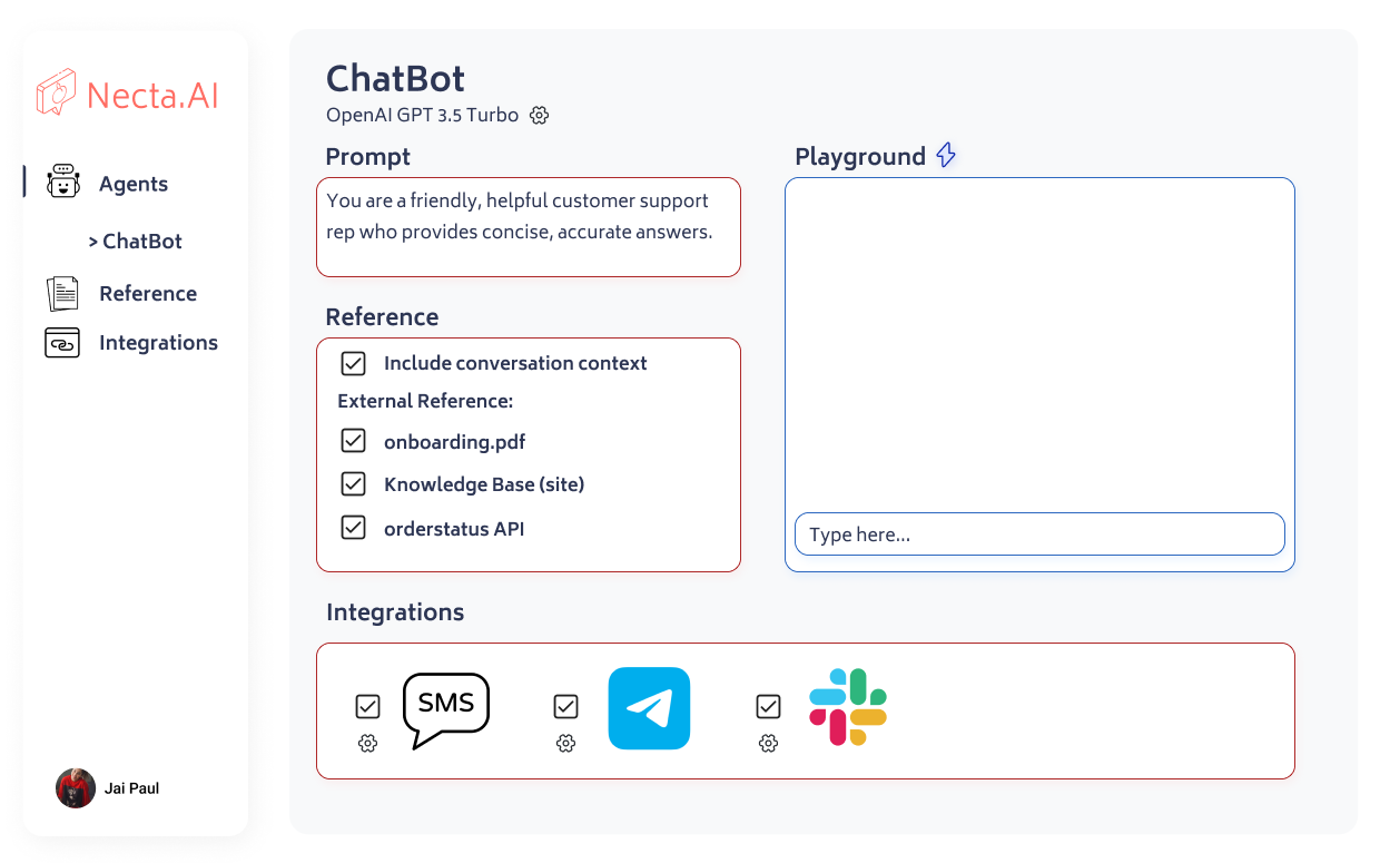 Meet your users where they are by easily connecting your chatbot to SMS, Slack, or any chat app